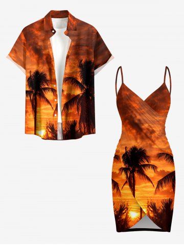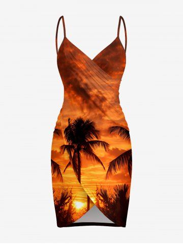 Coconut Tree Ombre Dusk Sunset Print Hawaii Convertible Beach Cover Up - Light Brown - 6x