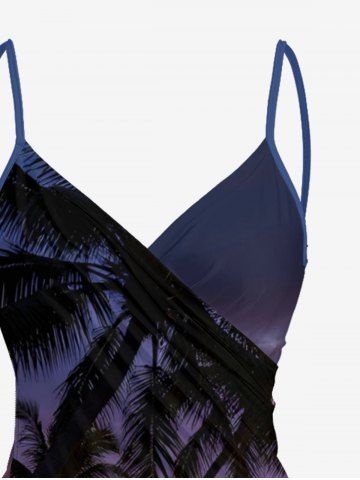 Coconut Tree Sea Ombre Sky Print Hawaii Convertible Beach Cover Up - Deep Blue - 4x