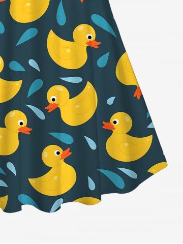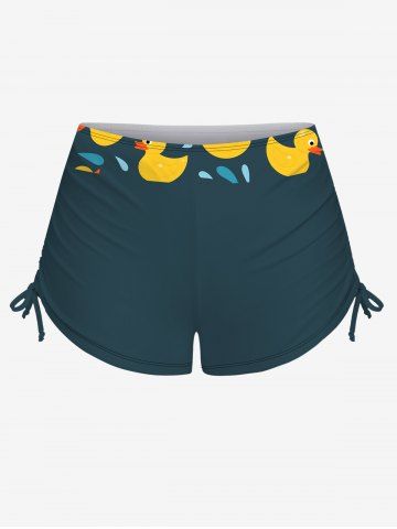 Graphic Swimwear > Duck Water Drop Print Hawaii Twist Halter Backless Cinched Boyleg Tankini Swimsuit