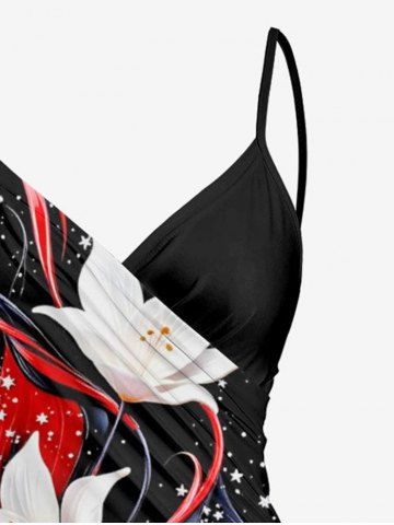 Flower Curve Stars Print Hawaii Convertible Beach Cover Up - Black - Xs