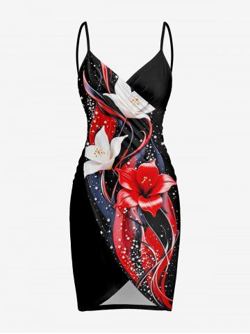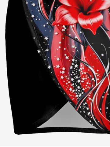 Flower Curve Stars Print Hawaii Convertible Beach Cover Up - Black - 4x