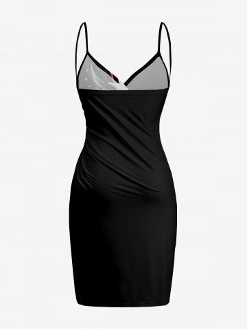 Flower Curve Stars Print Hawaii Convertible Beach Cover Up - Black - 6x