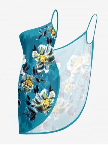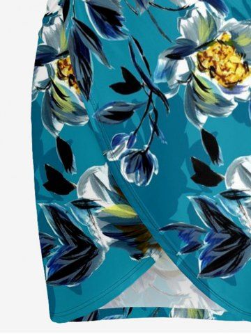 Flower Leaf Branch Print Hawaii Convertible Beach Cover Up - Blue - 3x
