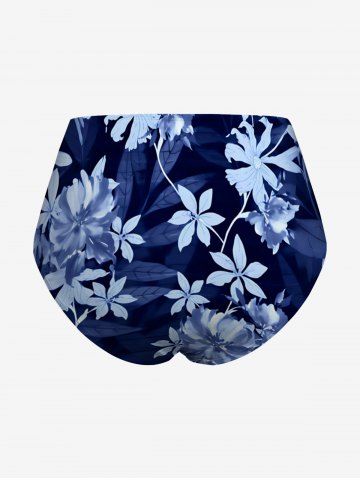 Flower Leaf Plant Print Hawaii Swim Bottom - Cadetblue - 3x