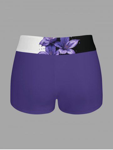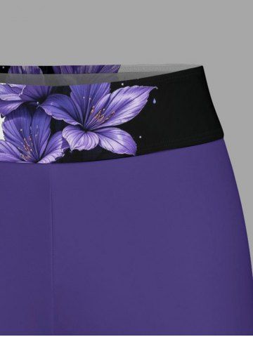 Flower Leaf Print Hawaii Twist Halter Backless Boyleg Tankini Swimsuit - Concord - 5x