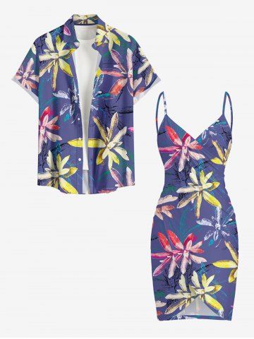 Flower Plant Print Hawaii Convertible Beach Cover Up - Purple - 4x