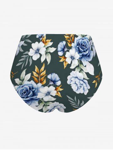 Flower Tropical Leaf Print Hawaii Lace Up Tankini Swimsuit (Adjustable Shoulder Strap) - Deep Green - 5x