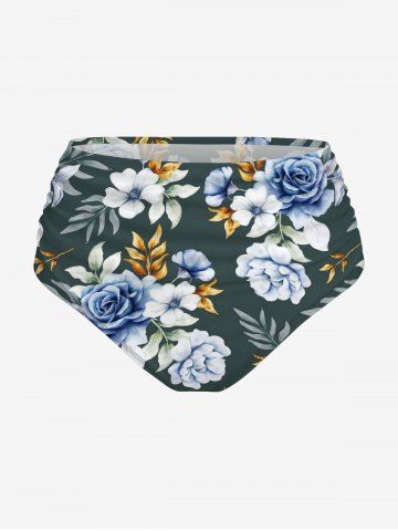 Flower Tropical Leaf Print Hawaii Lace Up Tankini Swimsuit (Adjustable Shoulder Strap) - Deep Green - 6x