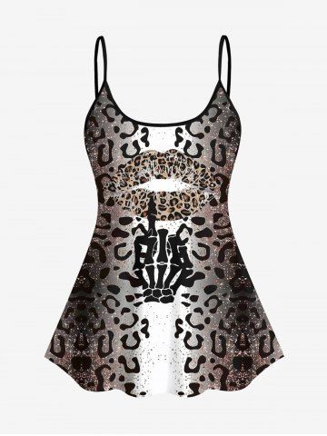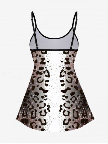 Leopard Lip Skeleton Gesture Glitter Sparkling Sequin 3D Print Boyshort Tankini Set - Deep Coffee - 2x