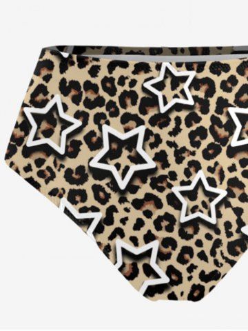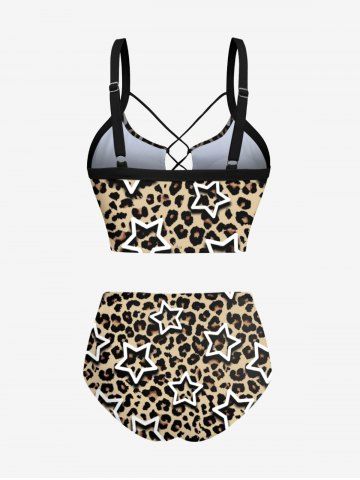Graphic Swimwear > Leopard Stars Print Lace Up Tankini Swimsuit (Adjustable Shoulder Strap)