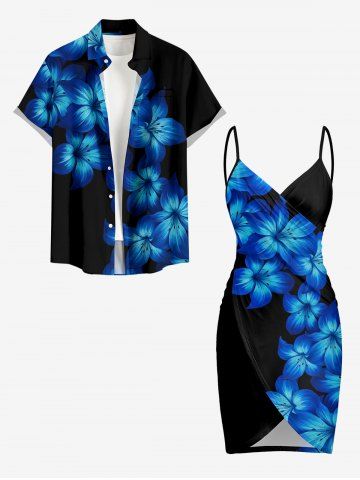 Ombre Flower Print Hawaii Convertible Beach Cover Up - Black - S