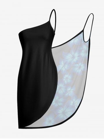 Ombre Flower Print Hawaii Convertible Beach Cover Up - Black - 4x