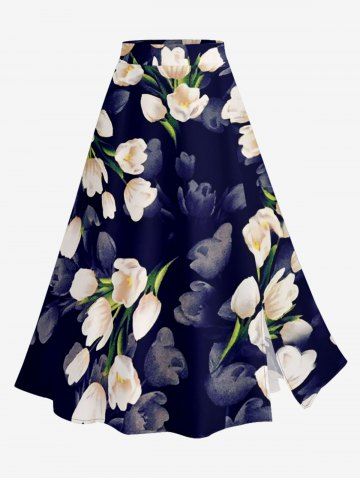 Ombre Flower Print Hawaii Plus Size Matching Set - Deep Blue