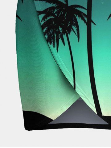 Plus Size Coconut Tree Dip Dye Ombre Galaxy Print Hawaii Convertible Beach Cover Up - Green - S