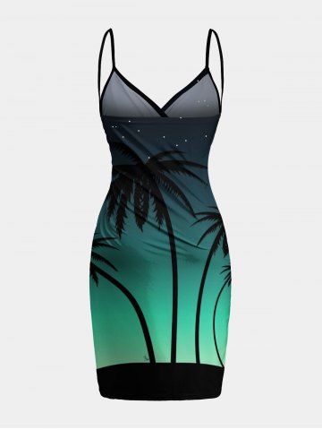 Plus Size Coconut Tree Dip Dye Ombre Galaxy Print Hawaii Convertible Beach Cover Up - Green - 6x