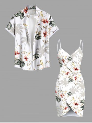 Plus Size Coconut Tree Hibiscus Flower Print Hawaii Convertible Beach Cover Up - White - 2x