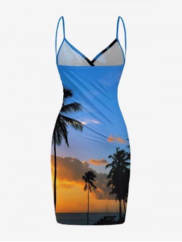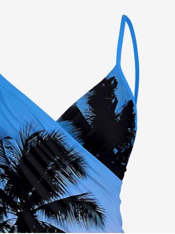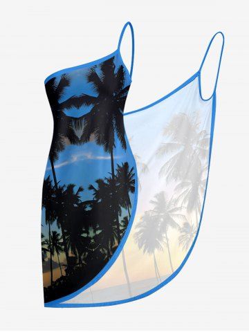 Plus Size Coconut Tree Ombre Colorblock Print Convertible Hawaii Beach Cover - Sky Blue - L