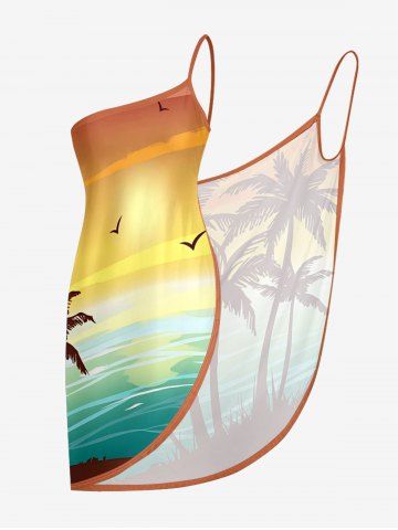 Plus Size Coconut Tree Ombre Print Convertible Hawaii Beach Cover - Brown - S