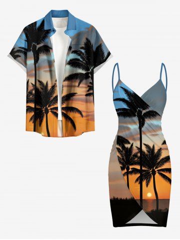 Plus Size Coconut Tree Ombre Print Convertible Hawaii Beach Cover - Orange - L