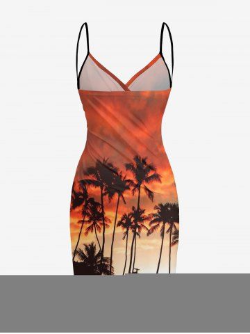 Plus Size Coconut Tree Ombre Sky Dusk Print Hawaii Convertible Beach Cover Up - Dark Orange - Xs