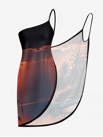 Graphic Swimwear > Plus Size Coconut Tree Ombre Sky Print Hawaii Convertible Beach Cover Up