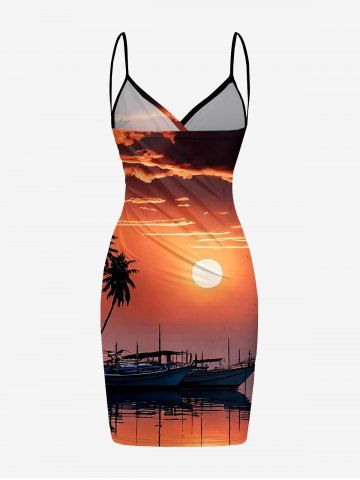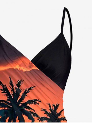 Plus Size Coconut Tree Ombre Sky Print Hawaii Convertible Beach Cover Up - Caramel Color - 6x