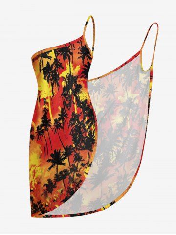 Plus Size Coconut Tree Print Convertible Hawaii Beach Cover - Burnt Orange - Xs