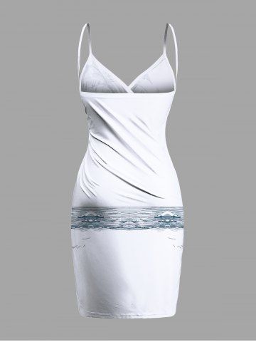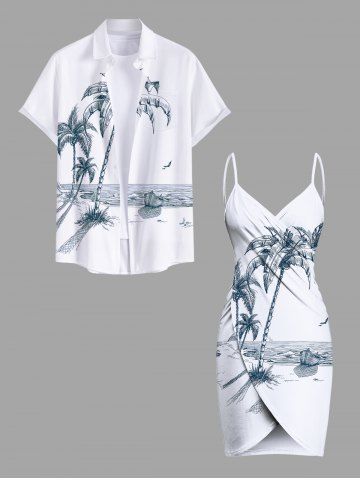 Plus Size Coconut Tree Ship Seascape Print Convertible Hawaii Beach Cover - White - S