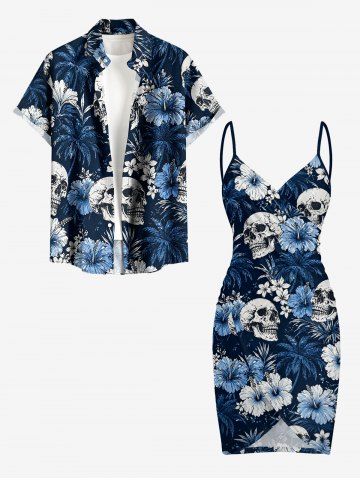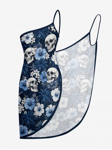 Graphic Swimwear > Plus Size Coconut Tree Skull Hibiscus Flower Print Convertible Hawaii Beach Cover