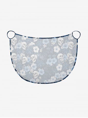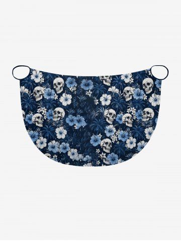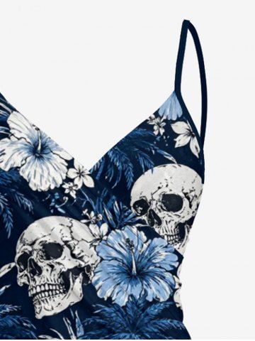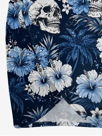 Plus Size Coconut Tree Skull Hibiscus Flower Print Convertible Hawaii Beach Cover - Deep Blue - 5x