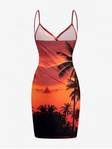 Plus Size Coconut Tree Sun Cloud Print Convertible Hawaii Beach Cover - Burnt Orange - Xxs