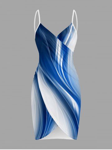 Plus Size Curve Light Beam 3D Print Convertible Beach Cover - Blue - Xs