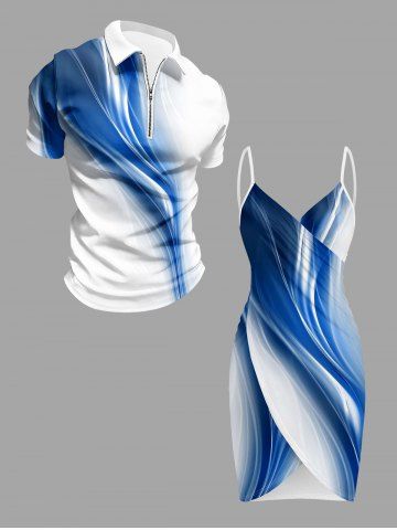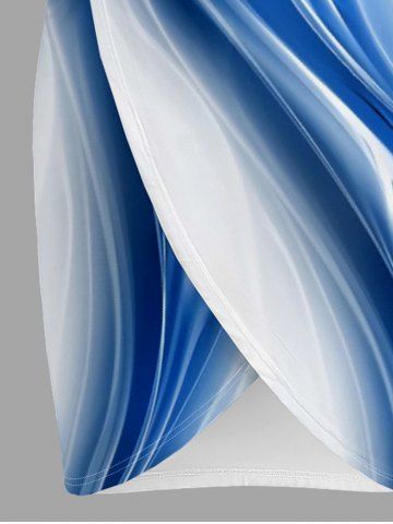 Plus Size Curve Light Beam 3D Print Convertible Beach Cover - Blue - L