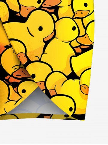 Plus Size Cute Duck Print Hawaii Convertible Beach Cover Up - Yellow - L