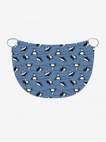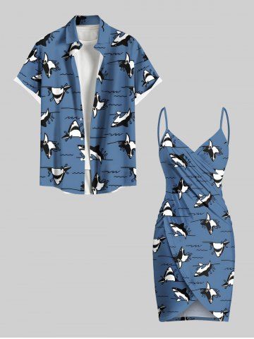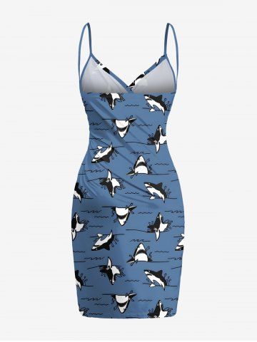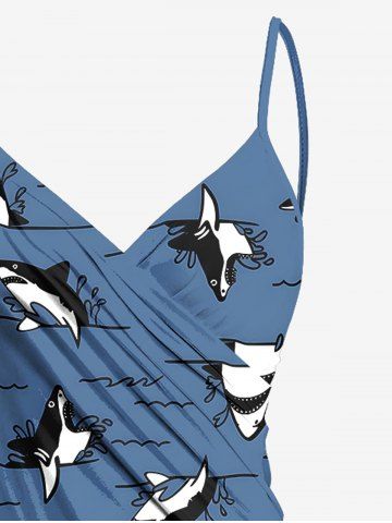 Plus Size Cute Shark Sea Waves Print Hawaii Convertible Beach Cover Up - Blue - M