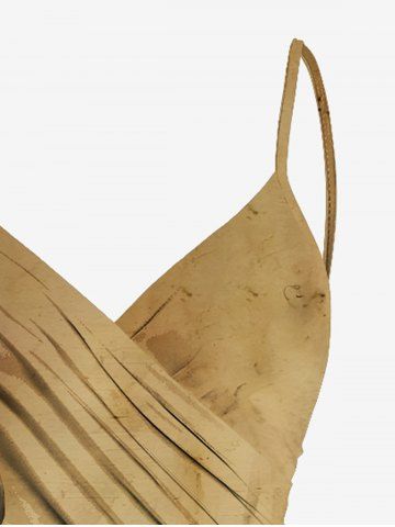 Plus Size Distressed Skull Rose Flower Print Halloween Convertible Beach Cover Up - Tan - Xxs