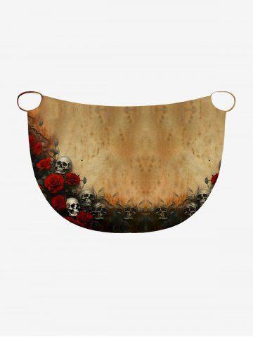 Plus Size Distressed Skull Rose Flower Print Halloween Convertible Beach Cover Up - Tan - L