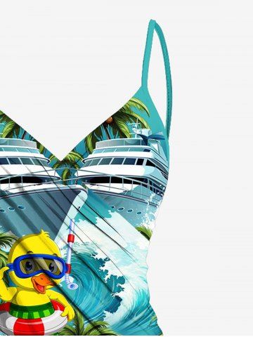 Graphic Swimwear > Plus Size Ducks Ship Coconut Tree Sea Waves Print Convertible Hawaii Beach Cover