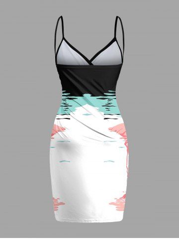 Plus Size Flamingo Sea Print Hawaii Convertible Beach Cover Up - Black - Xxs