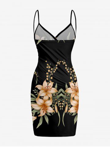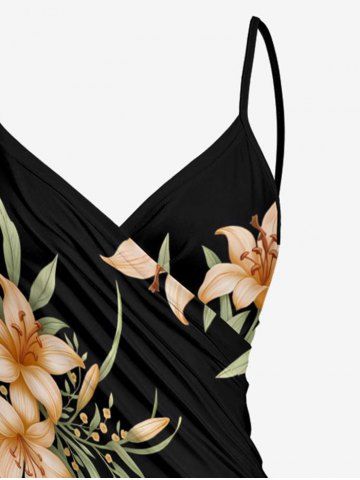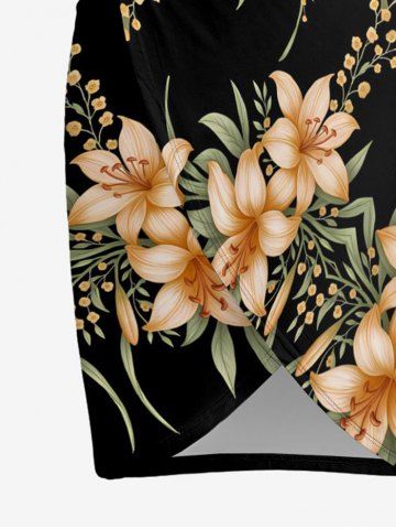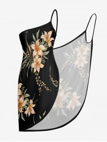 Plus Size Flower Leaf Branch Print Hawaii Convertible Beach Cover Up - Black - S