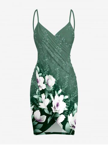Plus Size Flower Leaf Branch Print Hawaii Convertible Beach Cover Up - Light Green - 4x