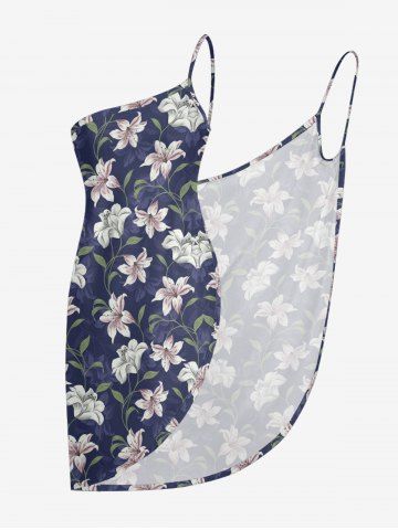 Graphic Swimwear > Plus Size Flower Leaf Branch Print Hawaii Convertible Beach Cover Up