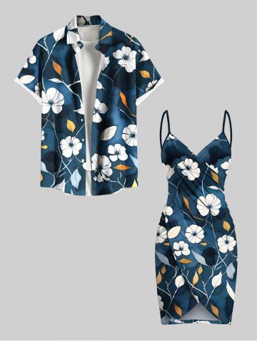 Plus Size Flower Leaf Branch Print Hawaii Ombre Convertible Beach Cover Up - Blue - 5x