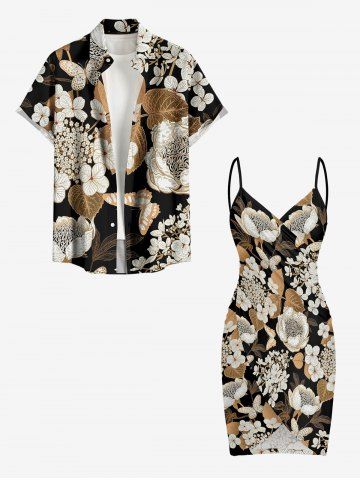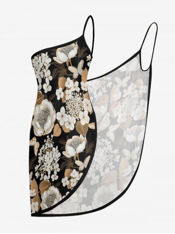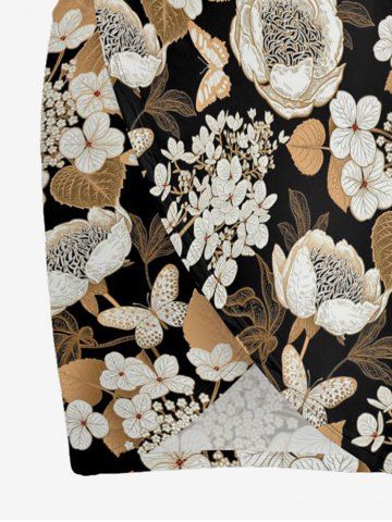 Plus Size Flower Leaf Butterfly Print Hawaii Convertible Beach Cover Up - Black - S