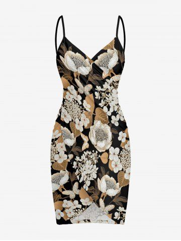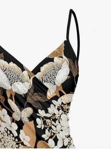 Plus Size Flower Leaf Butterfly Print Hawaii Convertible Beach Cover Up - Black - L