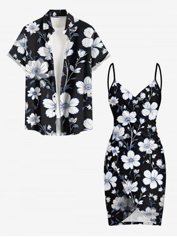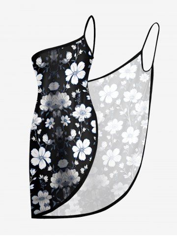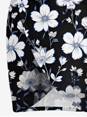 Plus Size Flower Leaf Print Convertible Hawaii Beach Cover - Black - Xxs
