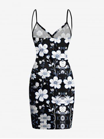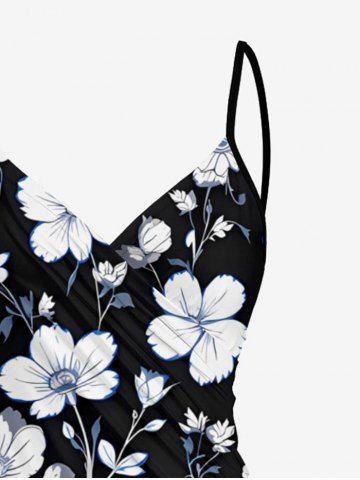Plus Size Flower Leaf Print Convertible Hawaii Beach Cover - Black - 3x