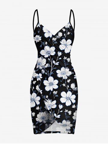 Plus Size Flower Leaf Print Convertible Hawaii Beach Cover - Black - 5x