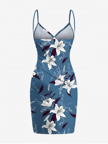 Plus Size Flower Leaf Print Hawaii Convertible Beach Cover Up - Sky Blue - Xxs