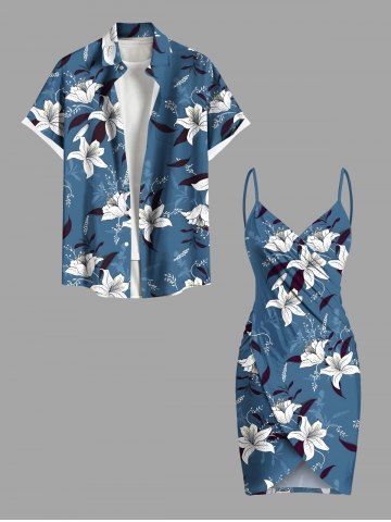 Graphic Swimwear > Plus Size Flower Leaf Print Hawaii Convertible Beach Cover Up